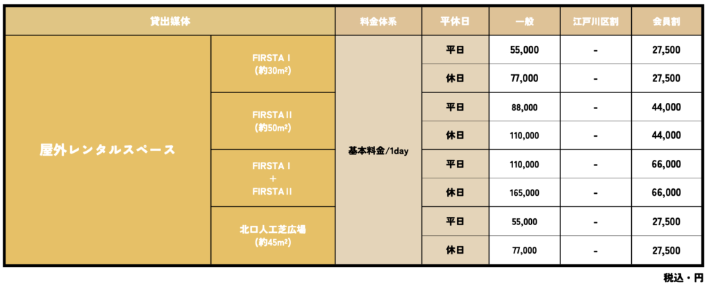 | 各種イベント(物販・展示など) | ー | 8,800円 |